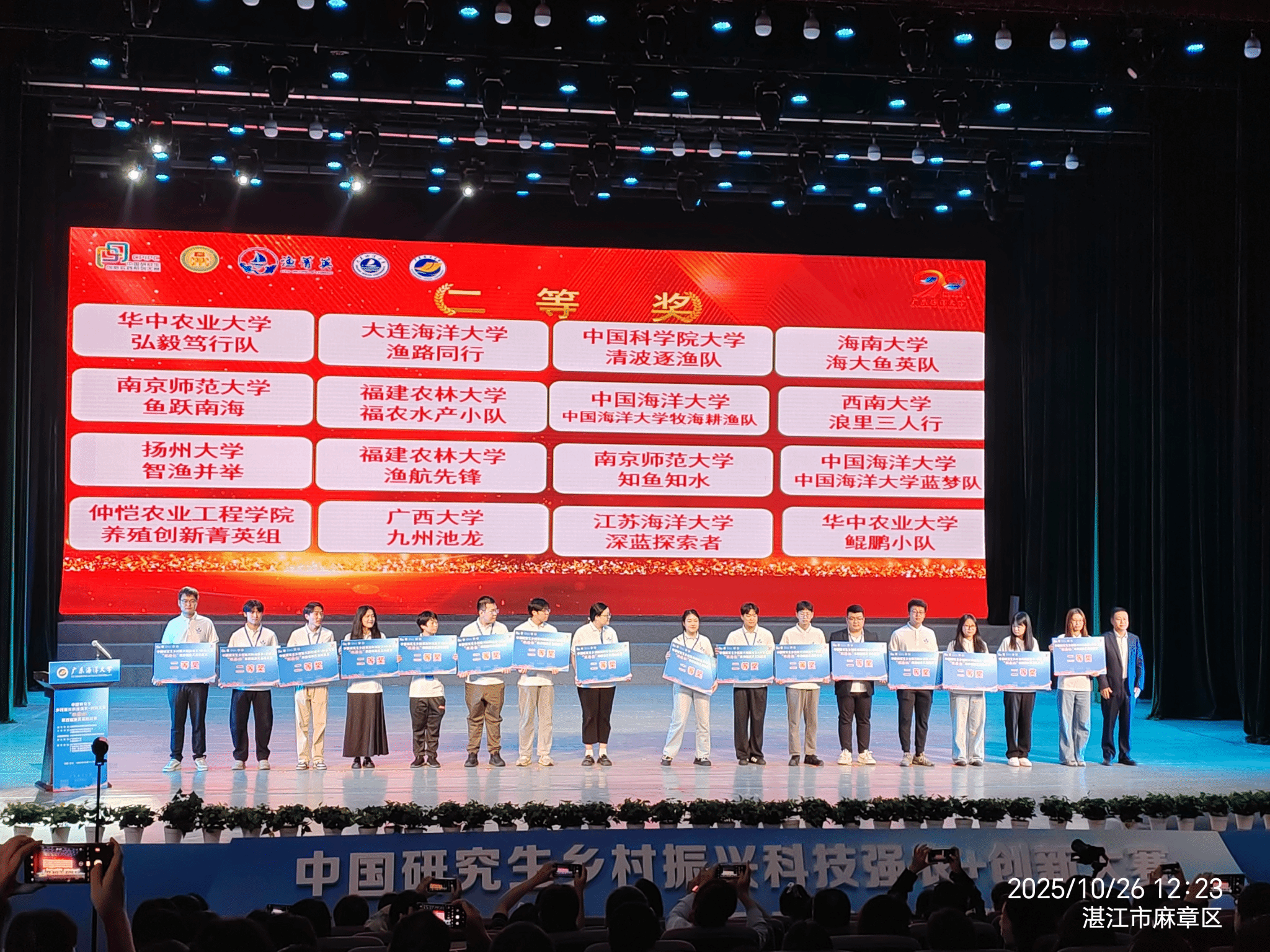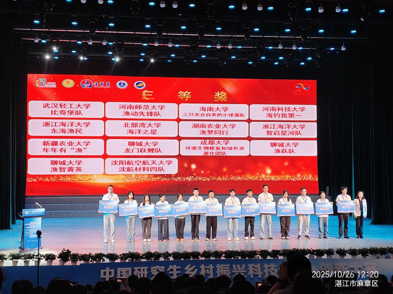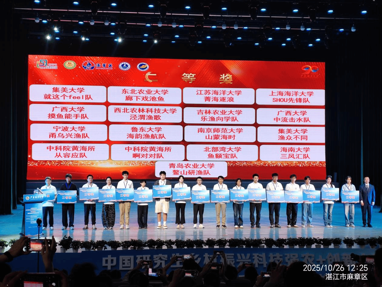 2025年10月24日至26日,由中国学位与研究生教育学会、中国科协青少年科技中心主办,广东海洋大学和大连海洋大学承办的中国研究生乡村振兴科技强农+创新大赛——“旺海杯”第四届渔菁英挑战赛在广东省湛江市广东海洋大学(湖光校区)圆满举行。本届大赛吸引了来自全国 41所高校的93支代表队 同台竞技。
